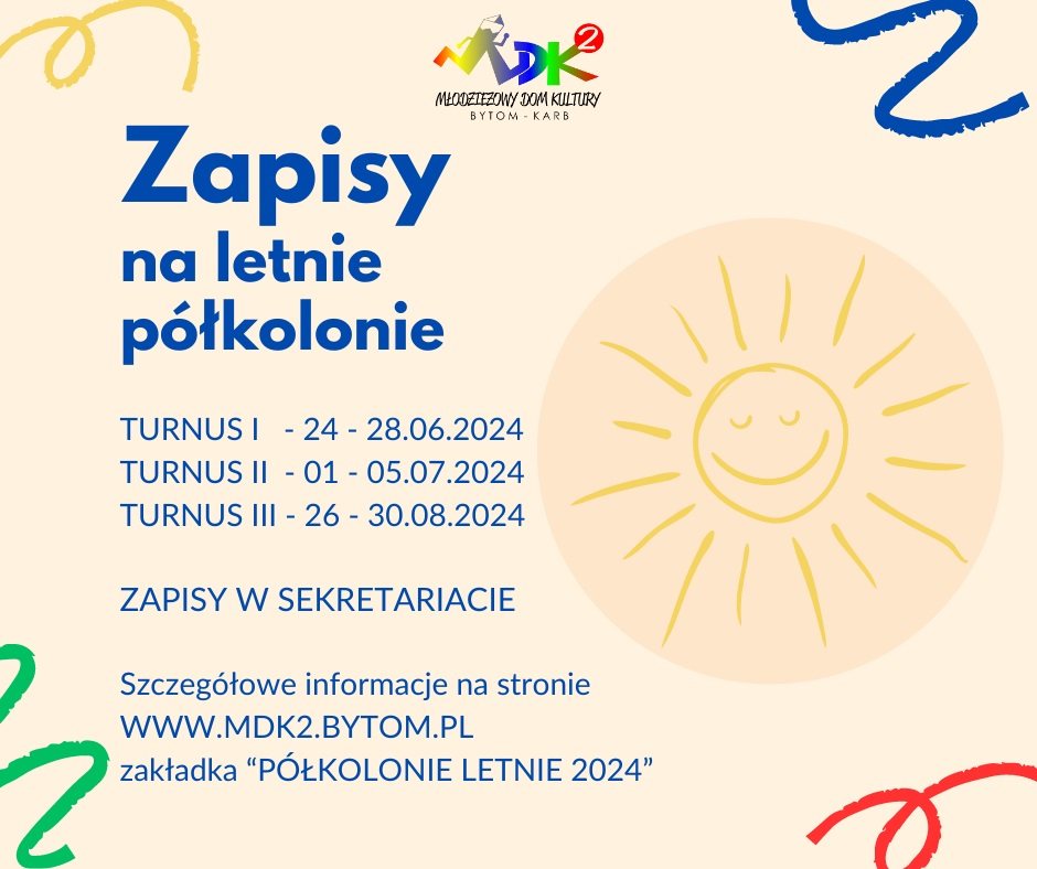 MDK nr 2 przy ul. Popiełuszki informuje o możliwości zapisów dzieci na półkolonie…
